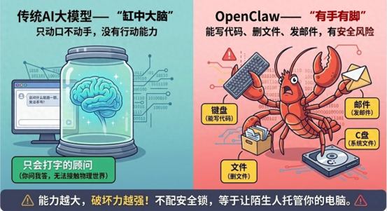 AI龙虾的走红,其实是AI产业从“对话式交互”向“行动式交互”转型的信号,它能真正融入工作流,帮中小微企业解决缺人、缺技术的数字化难题,这一点值得肯定。但它的快速扩张,却让安全问题成了“裸奔”状态。